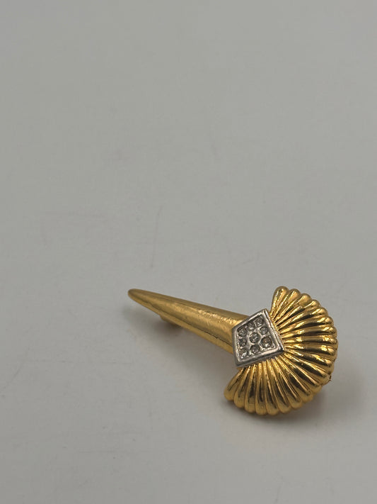 Abstrakte Vintage Brosche – Lüsternde Muscheloptik in Fächerform