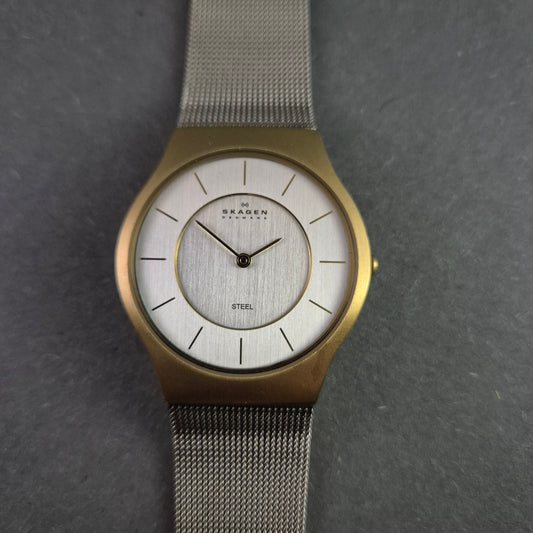 Elegante Skagen Herrenuhr – Minimalistisches Design in Gold und Silber