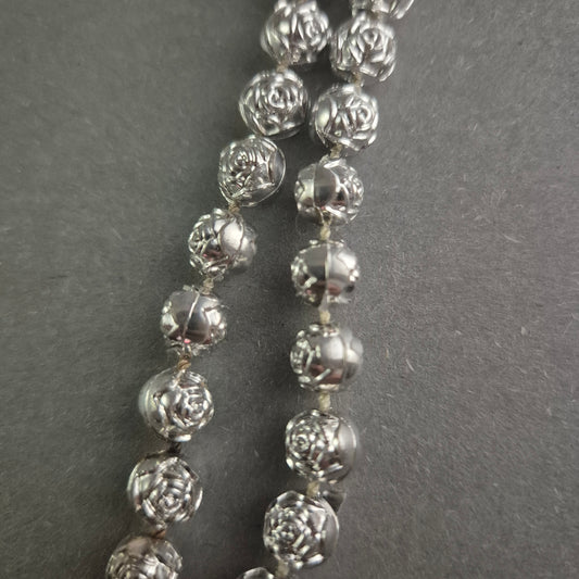 Elegante Silberkugelkette mit Rosendekor – Zeitlose Romantik