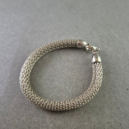 Elegante silberfarbene Damen Kette – Breites Gliederdesign mit Struktur