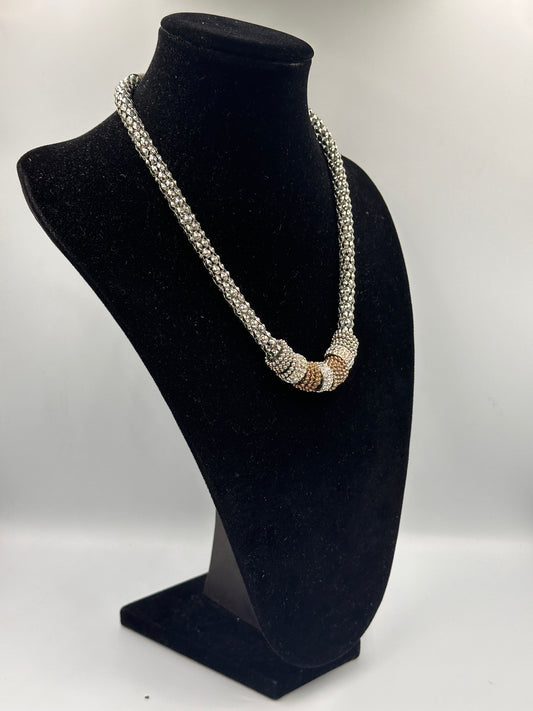 Elegante Silberfarbene Halskette mit Perlen in Verschiedenen Größen und Farben