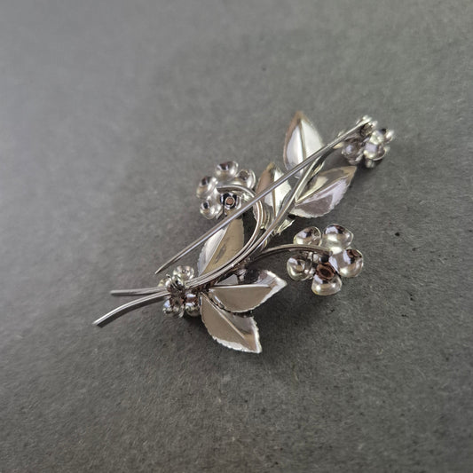 Elegante silberne Brosche – Florales Design mit filigranen Blüten