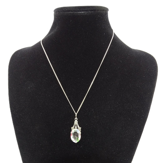 Elegante Silberkette 925 mit Glasigen Grünen Steinen Anhänger