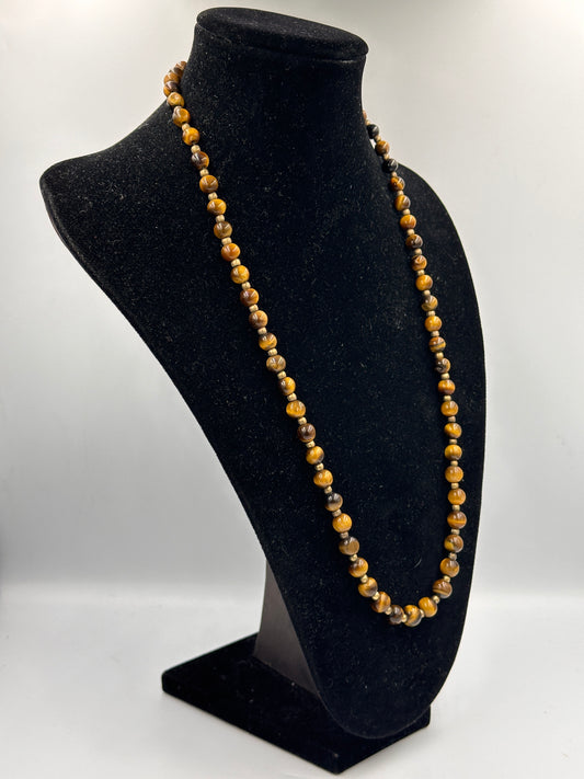 Elegante Tigeraugenstein-Halskette mit Goldakzenten und Magnetverschluss