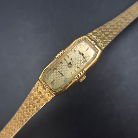 Elegante Tempic Damen Uhr – Goldfarben mit Wabenmuster