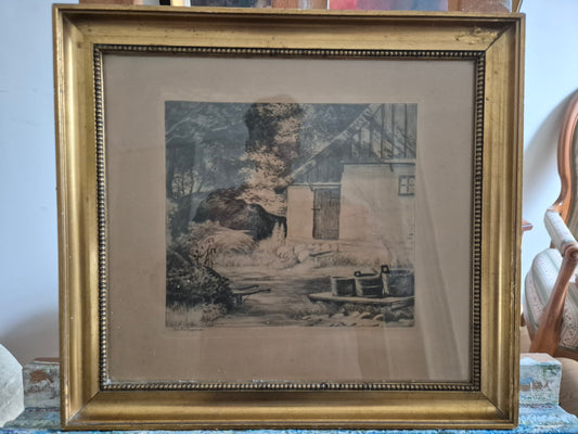 Handsignierte Datierte Grafik Radierung mit Landschaftsmotiv 52x42cm