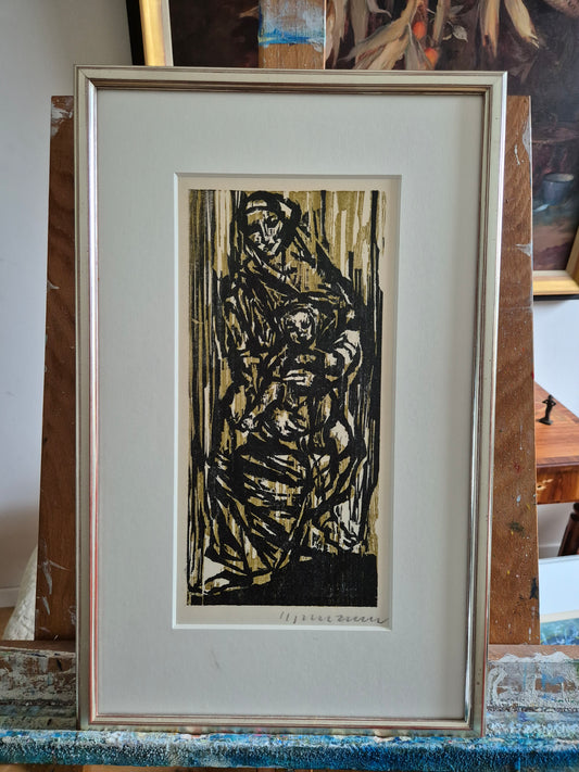 Handsignierte Farblithographie Madonna mit Christuskind Religion