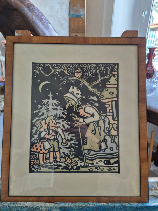 Hänsel und Gretel Original Holzschnitt Handsigniert 38x44cm