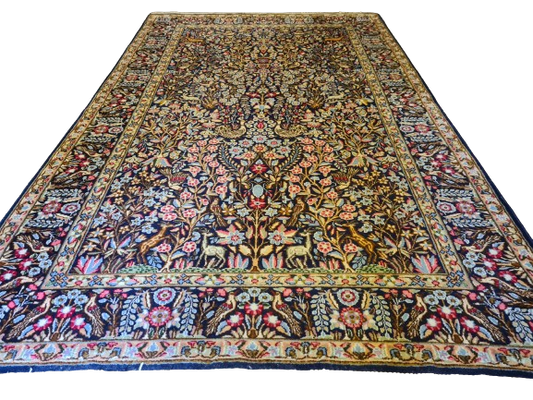 Hochwertiger Feiner Perser Kirman Teppich Handgeknüpfter Bilderteppich 241x151cm