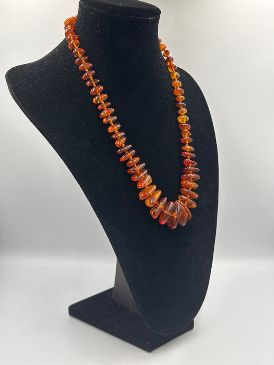 Hochwertige Vintage Bernstein Scheiben Halskette mit Goldfarbenem Verschluss