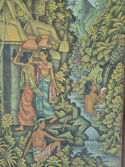 Indonesische Malerei (XX) Ölgemälde Bali Dorf und Naturmotiv 48x68 cm
