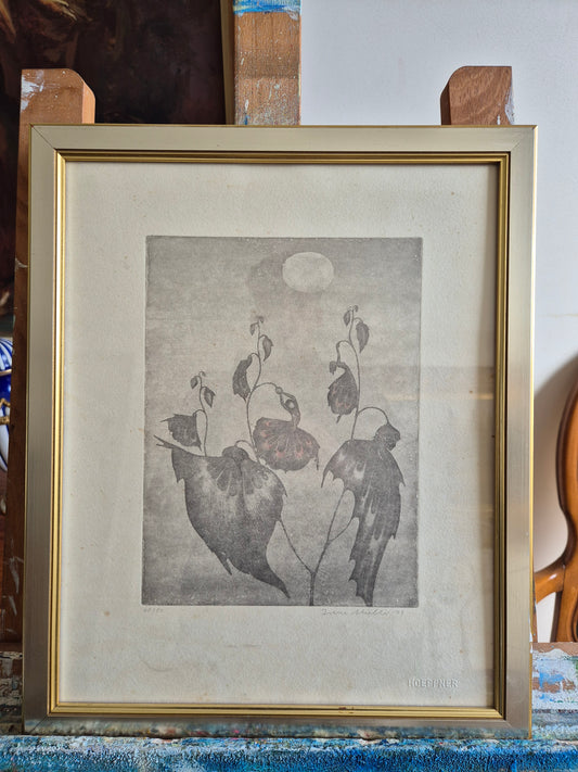 Irene Müller (geb. 1941) Farbradierung Rosen bei Vollmond 40/50