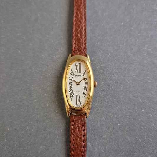 Klassische Pulsar Damenarmbanduhr – Eleganz in Gold und Braun