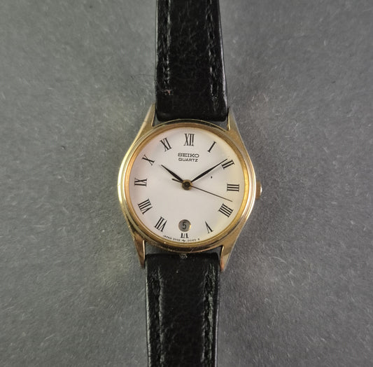 Klassische Seiko Herrenarmband Uhr mit goldfarbenem Gehäuse und Datumsanzeige