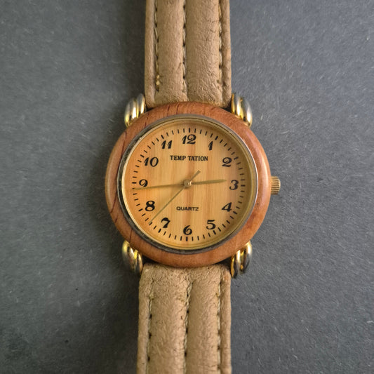 Klassische Temp Tation Damenarmbanduhr – Eleganz mit Holzakzenten