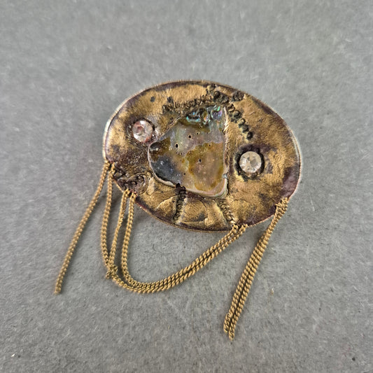 Künstlerische Vintage-Brosche mit Kettenelement – Strukturiertes Design