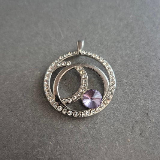 Runder Anhänger mit Zirkonia und lila Stein – Moderner Glanz in Silberoptik