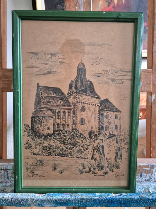 Schloss Dätzingen Druckgrafik Lithographie Landschaftsidylle Gerahmt