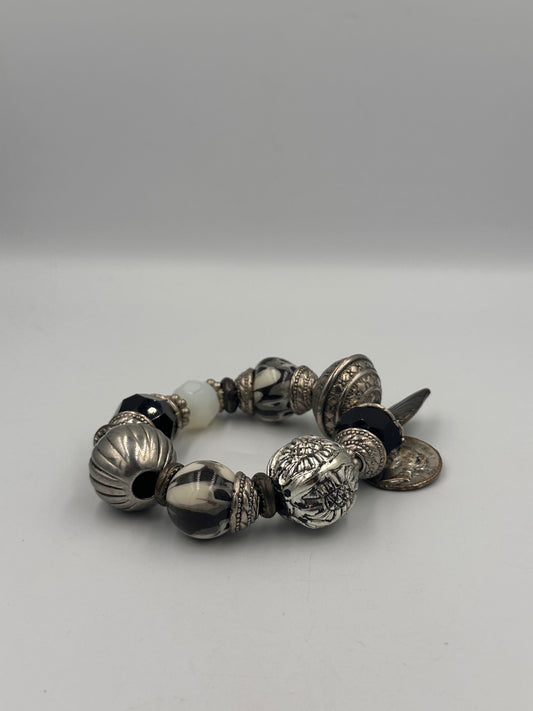 Schwarz-Silber Perlenarmband im Vintage-Stil