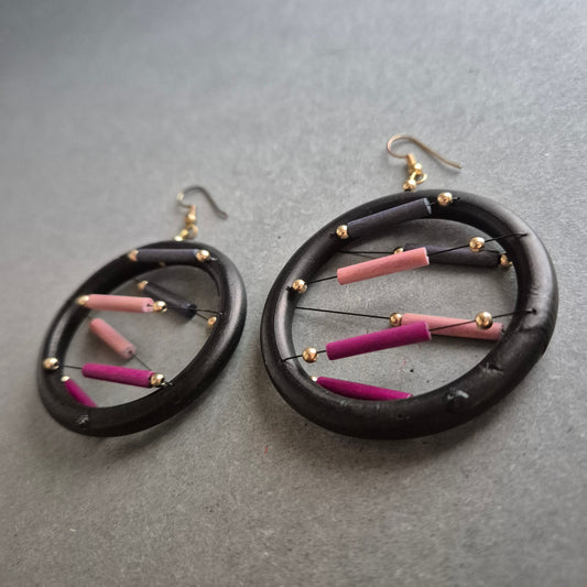 Statement-Ohrstecker in Schwarz – Kreisförmiger Retro-Look
