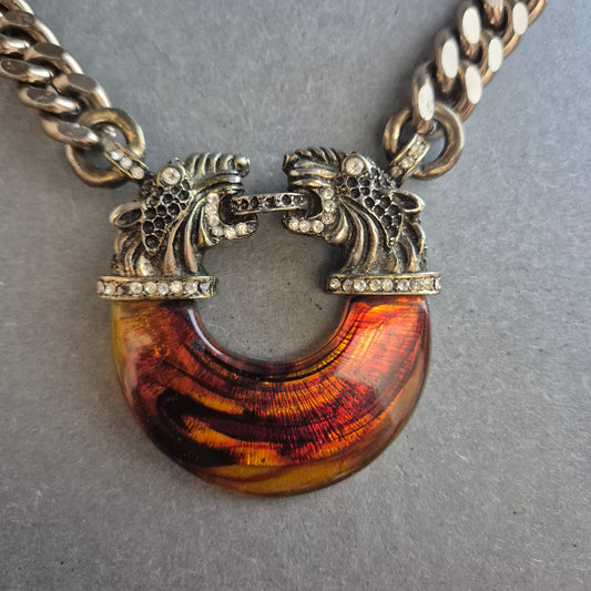 Statementkette mit Löwenköpfen und Bernsteinoptik – Extravaganz pur