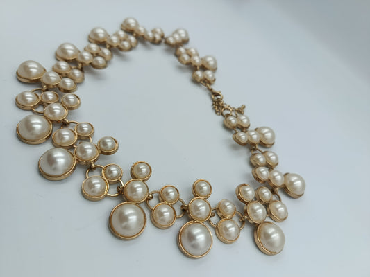 Statementkette Goldfarben mit schwarzem und cremefarbenem Dekor
