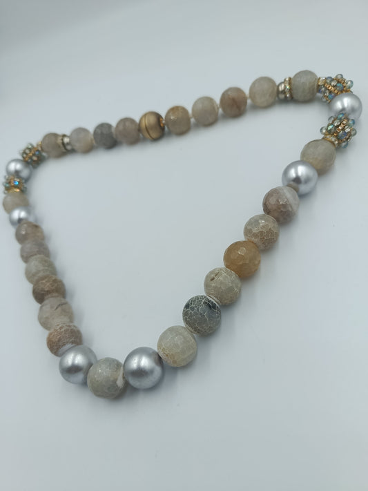 Statement-Halskette mit Achatperlen & Strass-Elementen