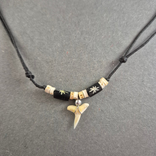 Surfer-Hai Zahn Halskette – Natürlicher Look mit Holzperlen