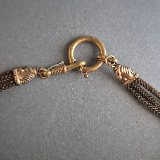 Vintage Textilhalskette mit goldfarbenem Handsymbol – Filigrane Eleganz