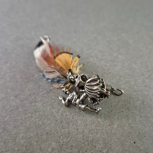 Vintage Trachten Brosche – Tänzerpaar mit bunten Federn