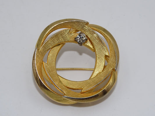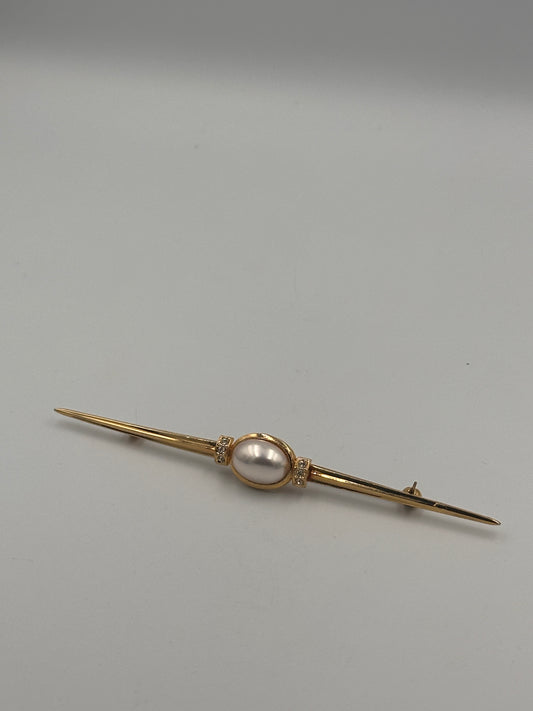 Vintage Vergoldete Brosche mit Zirkoniasteinen und Perle