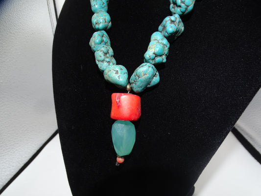 Vintage Türkisfarbene Halskette mit Natursteinperlen – Zeitlose Eleganz