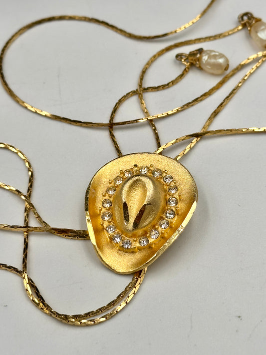Vintage Vergoldete Halskette mit Cowboy Hut und Zirkonia Steinen