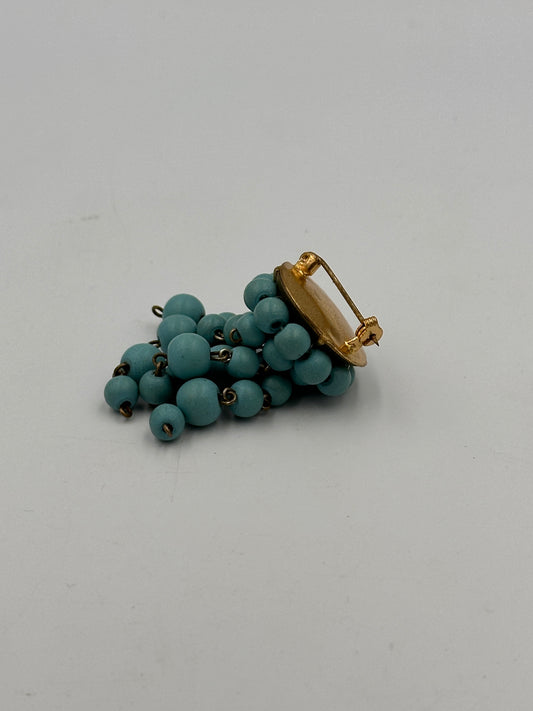 Vintage vergoldete 6-Strang Brosche mit türkisfarbenen Kugeln