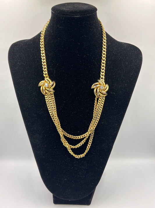 Vintage Vergoldete Halskette mit Blumen und Zirkonia Steinen