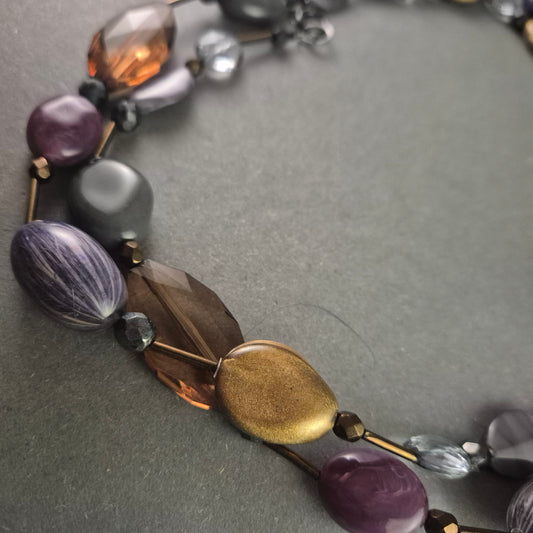 Vintage-Statement-Kette mit Glas- und Metallperlen – Elegante Erdtöne & Violett