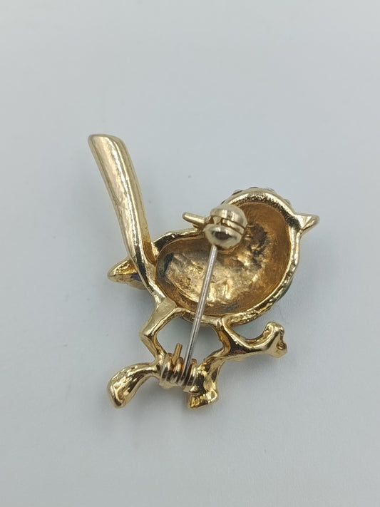 Vogel-Brosche mit Emaille & Strass – Goldblauer Vintage-Charme