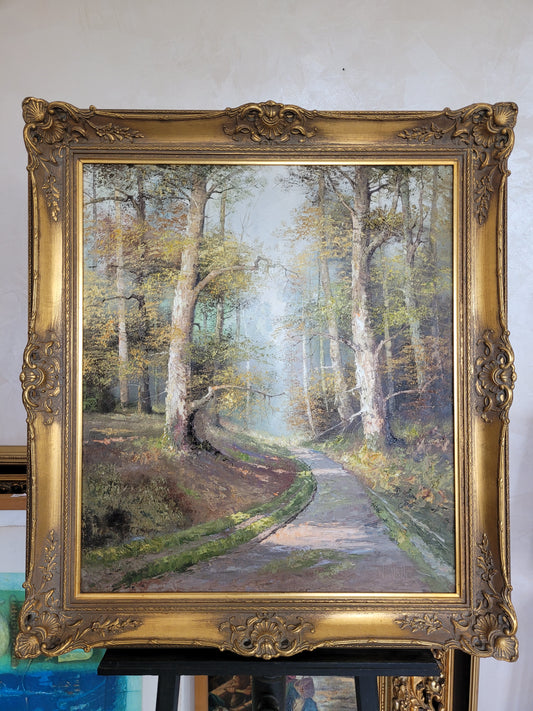 W. Volker (XX) Großes Ölgemälde Idyllischer Waldspaziergang 100x90cm