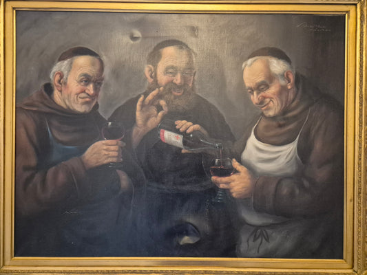 Walther Purschke (1924-2011) Ölgemälde Mönche bei Wein 98,5x78,5
