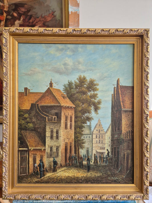 Windaus (XX) Ölgemälde Stadtbilder Straßenszene Sommer 69x59cm