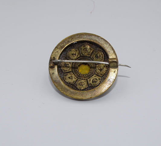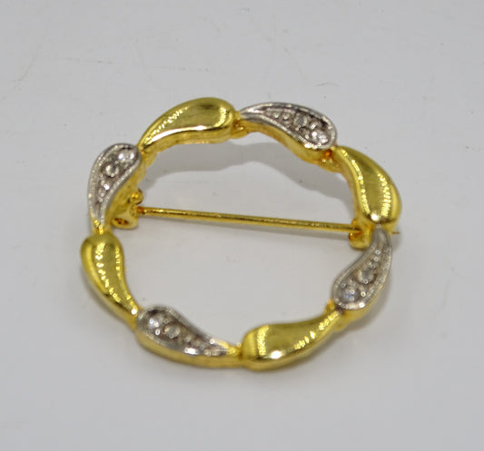 Wunderschöne Bicolor Kreis-Brosche in Goldfarbe