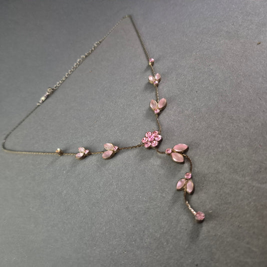 Zarte Vintage-Halskette mit rosa Blüten – Femininer Schmucktraum