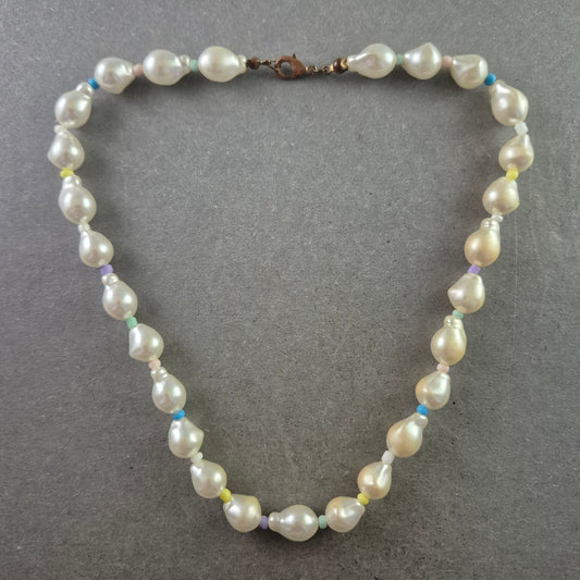 Zarte Vintage-Kette mit barockförmigen Perlen und Farbdetails