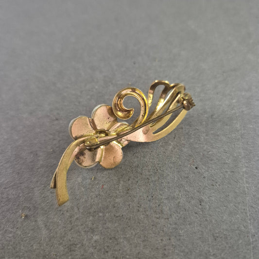 Zarte Vintage-Brosche mit Perlmuttblüte – Goldfarbener Blütenschwung