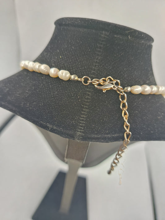 Zarte Vintage-Halskette mit Cremeperlen und Stabgliedern