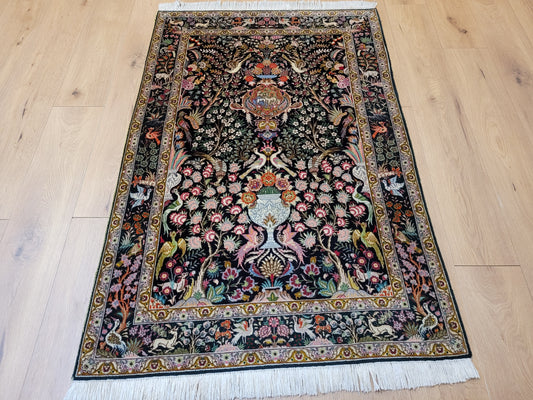 Kaschmir Ghom Seidenteppich Lebensbaum feine Knüpfung