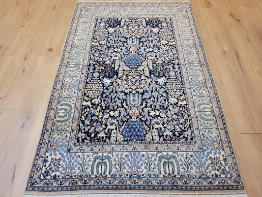 Täbriz Teppich Korkwolle mit Seide Tier- und Gartenmotiv feine Knüpfung