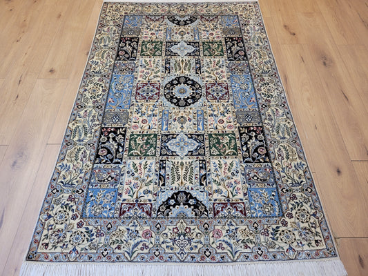 Nain Teppich Korkwolle mit Seide Gartenmotiv feine Knüpfung