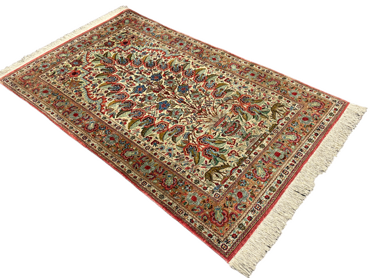 Handgeknüpfter Perser Orientteppich Seidenteppich Ghom Lebensbaum 167x103 cm