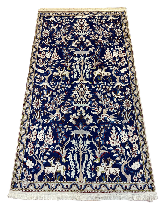 Handgeknüpfter Perser Orientteppich Nain mit Seide Lebensbaum 210x120 cm